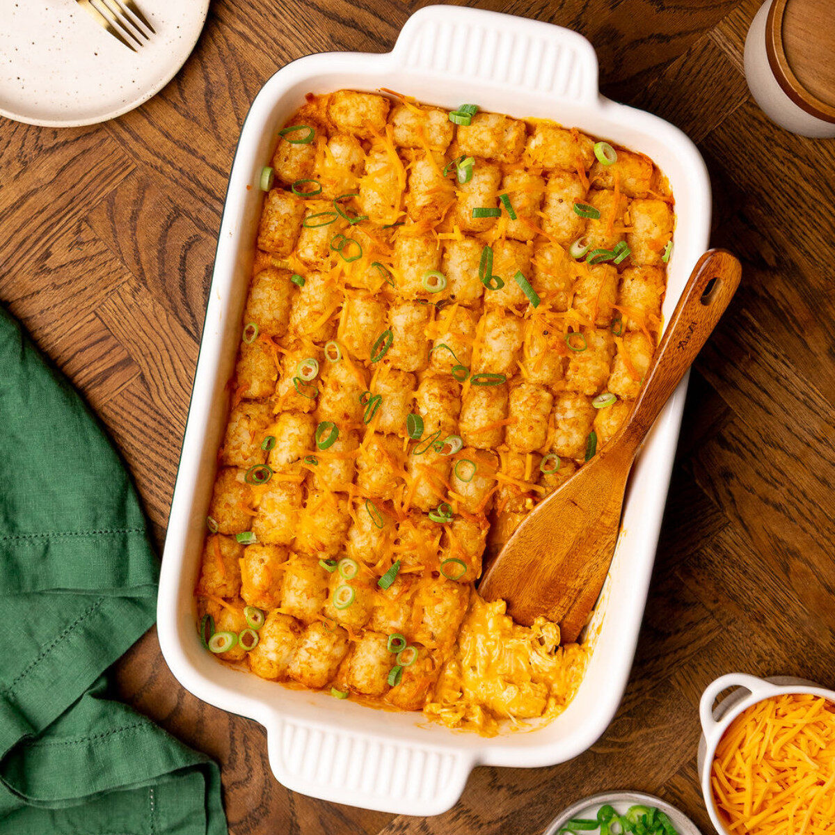 Best Damn Buffalo Chicken Tater Tot Casserole