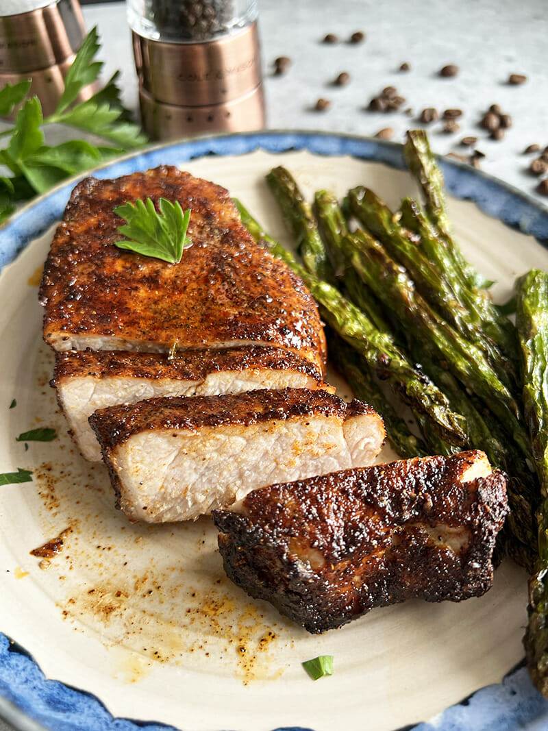 Boneless Pork Chops Ground Coffee Smoked Paprika Chili Powder Brown Sugar Onion and Garlic Powder Coriander Cinnamon